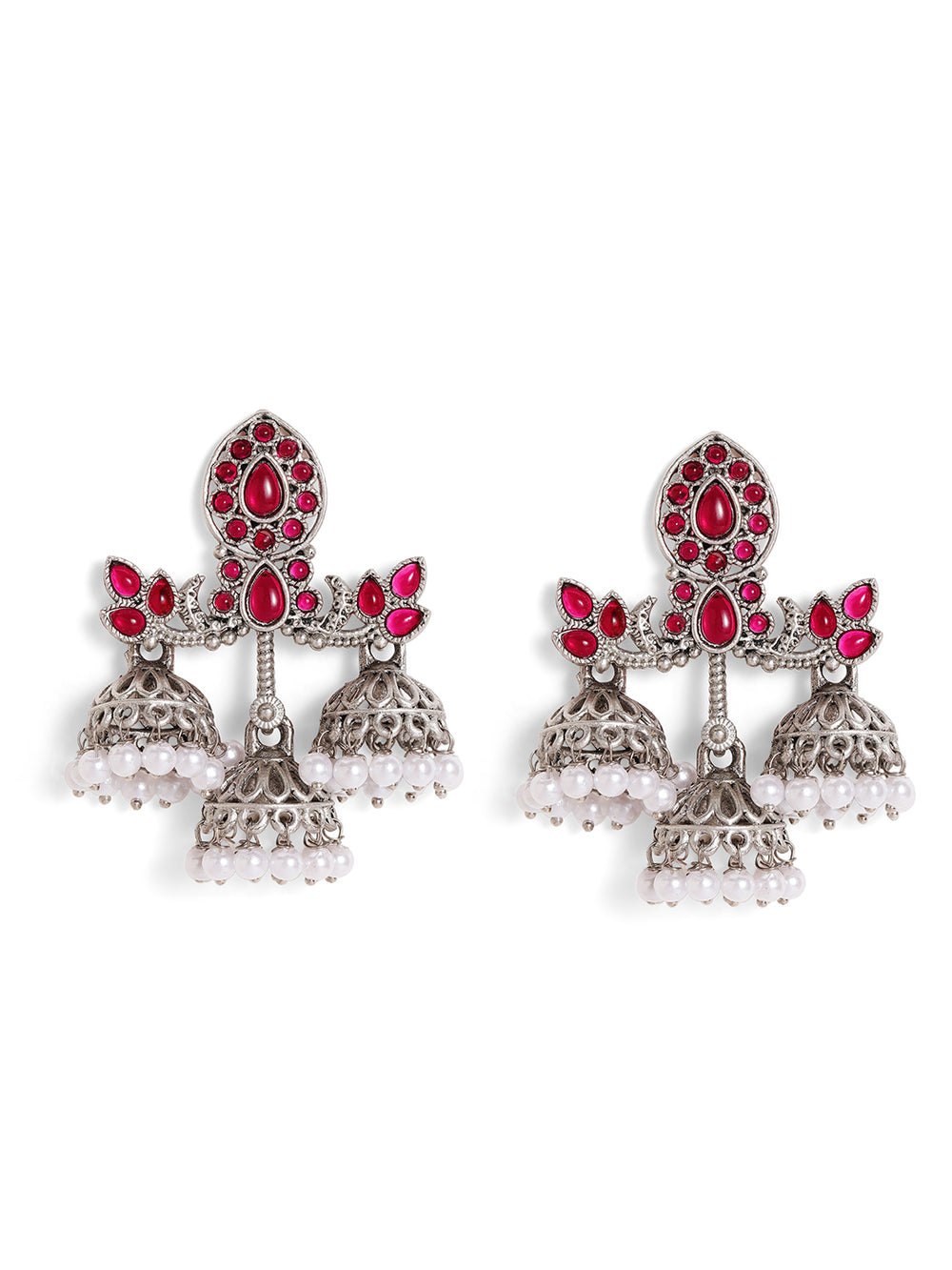 Priyaasi Silver Plated Red Oxidized Drop Earrings
